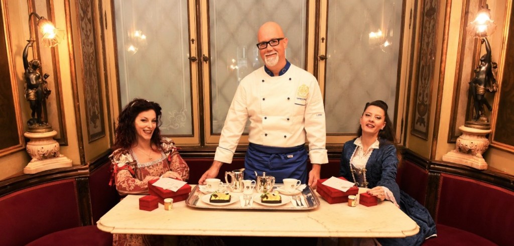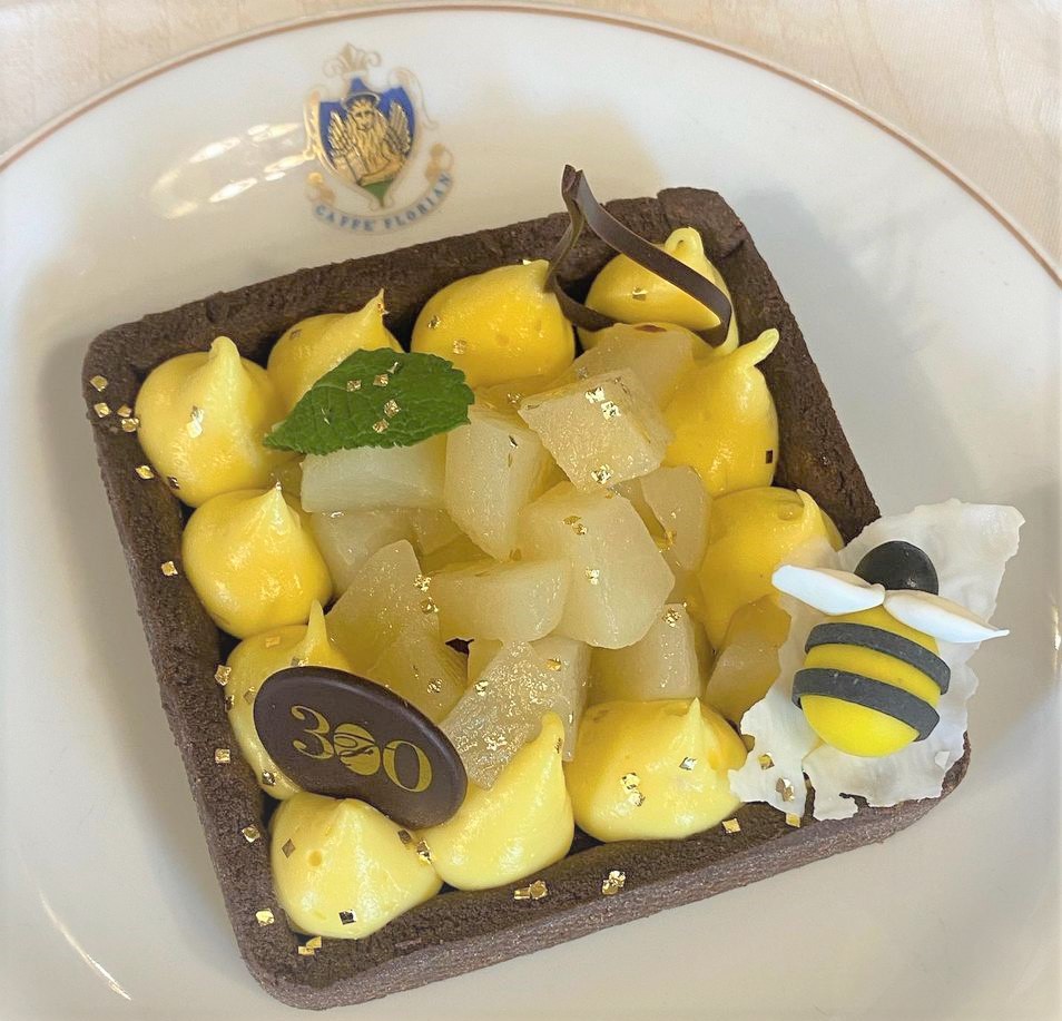 Il Caffè Florian ha aderito al progetto con un dolce di alta pasticceria ideato e realizzato dallo Chef Pâtissier Cristiano Strozzi. La tortina monoporzione (base al Miele di Sant’Erasmo) da gustare con la forchetta, è stata chiamata Scrigno del Doge.