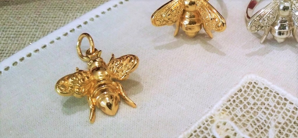 Api d’oro 750‰ KT 18 e d’argento 925‰, idem per il cucchiaino.